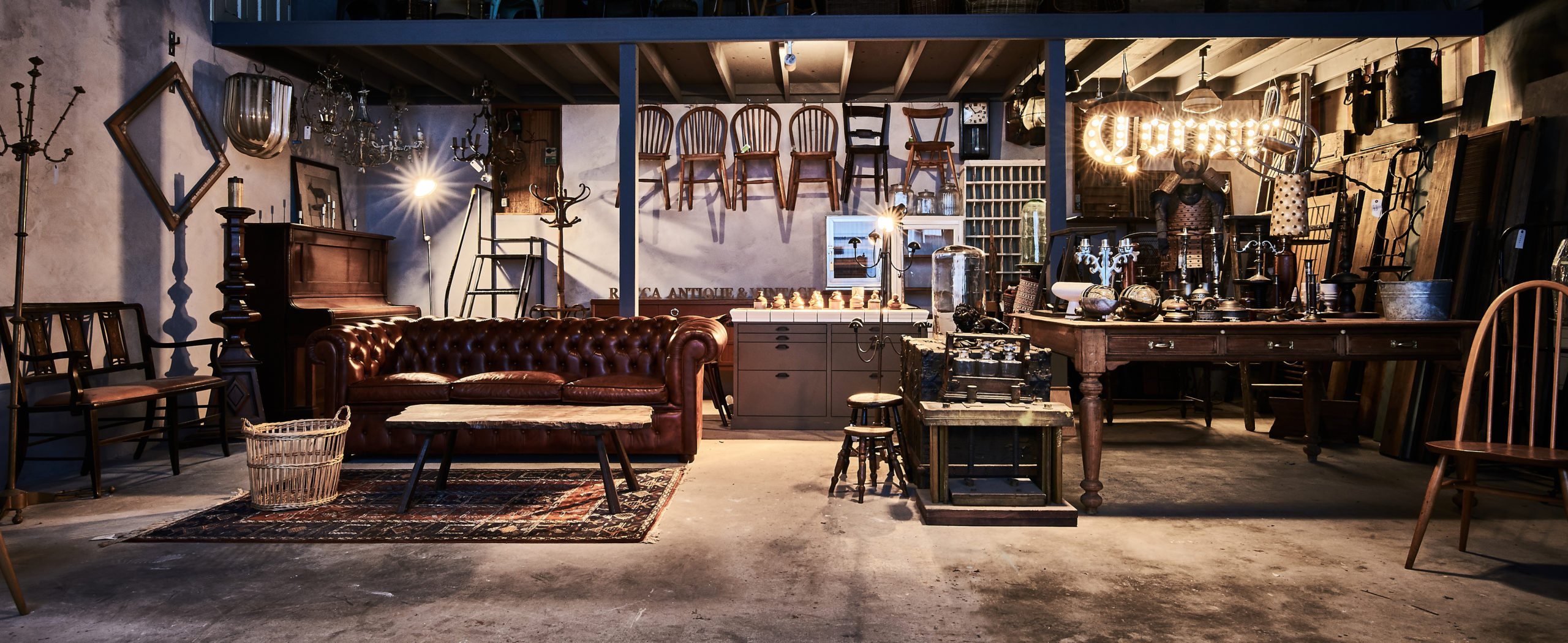 ナチュラルなアンティーク家具に囲まれて心地よい空気の中、一点物と向き合う。